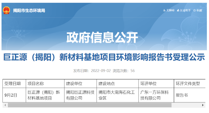 建設(shè)項(xiàng)目名稱:巨正源(揭陽)新材料基地項(xiàng)目