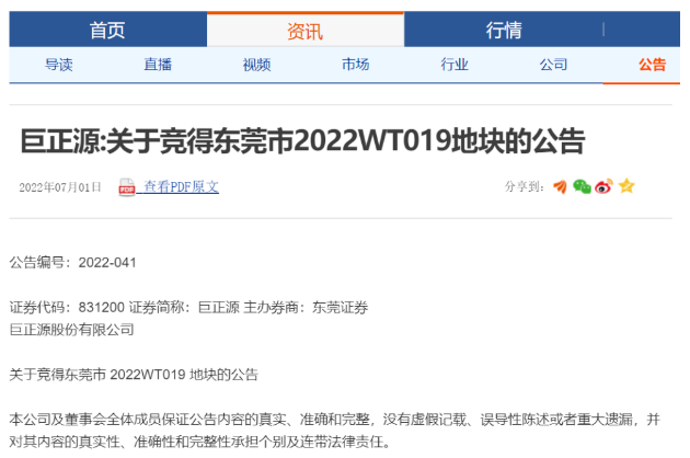 7月1日,巨正源發(fā)布"關(guān)于競得東莞市 2022WT019 地塊的公告"。據(jù)介紹,其子公司東莞巨正源于 2022 年 6 月 29 日在東莞市公共資源交易中心競得編號為 2022WT019 的地塊,該地塊位于東莞市沙田鎮(zhèn)和安村,用于 120萬噸/年丙烷脫氫制高性能聚丙烯項(xiàng)目二期工程的建設(shè)。