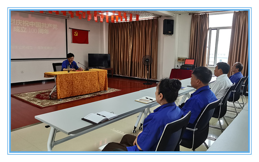 2021年7月3日上午8:00點(diǎn),盤錦恒生公司在四樓會議室舉行熱烈慶祝中國共產(chǎn)黨成立100周年大會,全體黨員在面向黨旗重溫入黨誓詞,黨支部書記胡志庭作了重要講話。