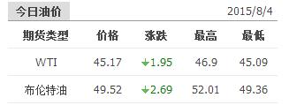 2015年8月4日國際原油價格表
