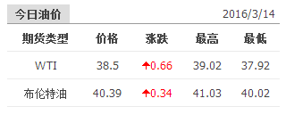 2016年3月14日國際原油價格表