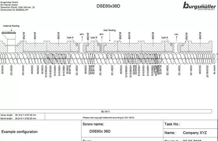 因此,配混商們可以將Burgsmüller ScrewCon軟件提供的完美的螺桿配置集成到生產(chǎn)文件中并用于作業(yè)計劃。目前的資料庫大約有3000種螺桿和料筒外殼組件可供不同品牌、類型和規(guī)格的雙螺桿擠出機選用。這允許針對特定的機型和應用而設計訂制的配置,如果所需要的組件不可獲取,Burgsmüller還可以利用機器所有者們手中的基礎數(shù)據(jù)輕松地添加它們。