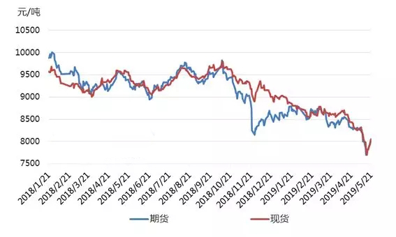圖2 2018-2019年期現(xiàn)貨對(duì)比走勢(shì)圖